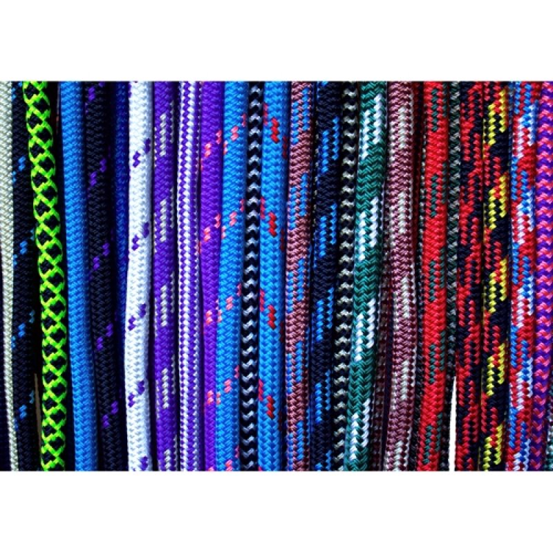 100% polyester. Faster and cheaper to splice than marine ropes.